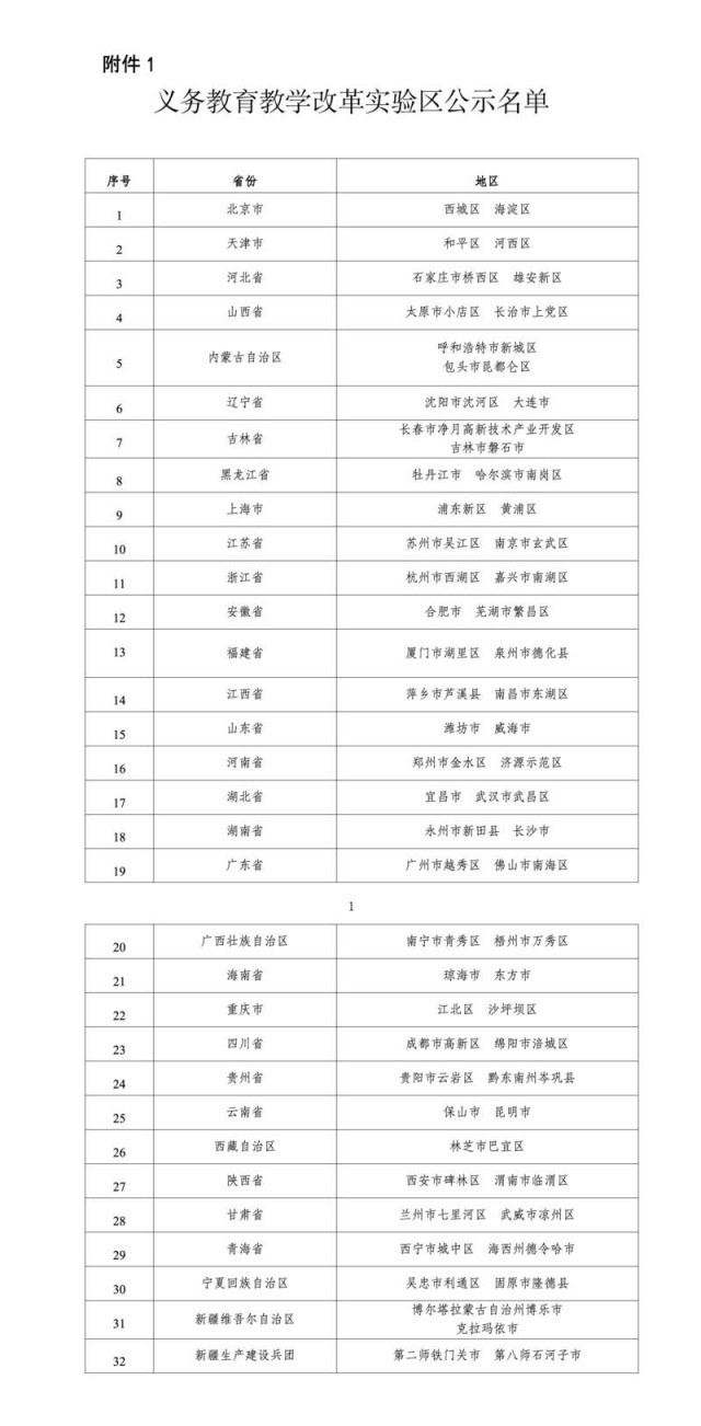 教育部公示義務(wù)教育教學(xué)改革63個實驗區(qū)和189個實驗校