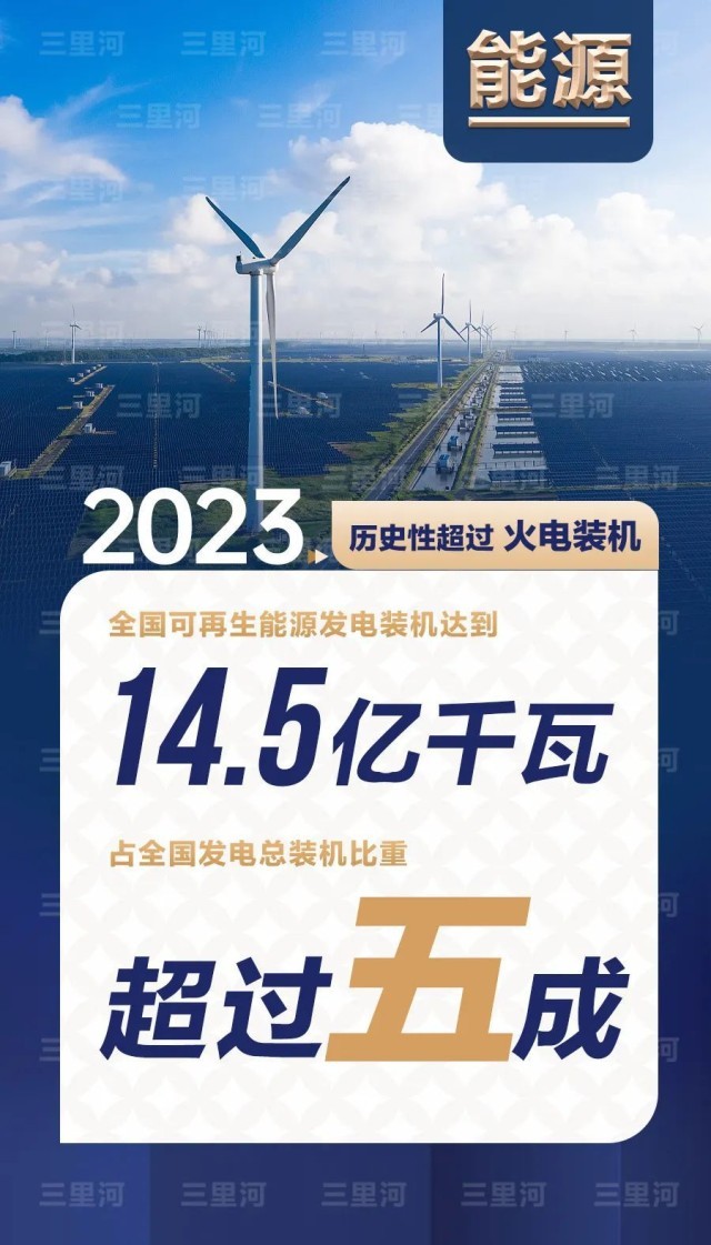 2023年,全國(guó)可再生能源發(fā)電裝機(jī)達(dá)到14.5億千瓦,占全國(guó)發(fā)電總裝機(jī)比重超過五成,歷史性超過火電裝機(jī)。