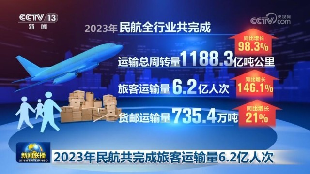 2023年民航共完成旅客運(yùn)輸量6.2億人次