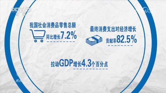 經(jīng)過短暫的波動,從7月份開始,消費(fèi)再次走出了企穩(wěn)回升的曲線。2023年,我國社會消費(fèi)品零售總額同比增長7.2%,最終消費(fèi)支出對經(jīng)濟(jì)增長貢獻(xiàn)率達(dá)到82.5%,拉動GDP增長4.3個百分點(diǎn)。