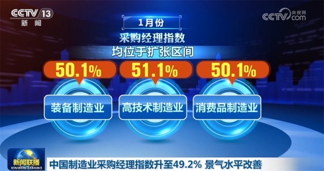央視網(wǎng)消息:1月31日,《新聞聯(lián)播》報道了中國制造業(yè)采購經(jīng)理指數(shù)、“全面推進中國式現(xiàn)代化建設(shè)”經(jīng)濟形勢系列報告會、養(yǎng)老、經(jīng)貿(mào)合作、促消費、市場運行、設(shè)計建造等多個領(lǐng)域的利好消息?;赝?023年,歷經(jīng)風雨的中國經(jīng)濟顯示出強大的韌性和活力,不斷以中國新發(fā)展為世界帶來新動力、新機遇。結(jié)合近期公布的一系列數(shù)據(jù),新的一年,支撐高質(zhì)量發(fā)展的要素不斷集聚,中國經(jīng)濟必將持續(xù)回升向好。