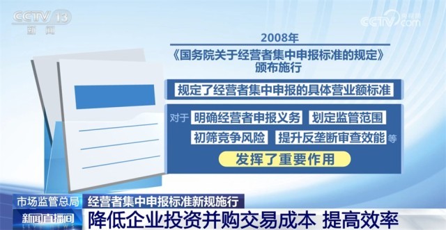 市場監(jiān)管總局介紹,經(jīng)營者集中申報標準是經(jīng)營者集中反壟斷審查制度的重要內(nèi)容。2008年《國務院關(guān)于經(jīng)營者集中申報標準的規(guī)定》頒布施行,規(guī)定了經(jīng)營者集中申報的具體營業(yè)額標準,對于明確經(jīng)營者申報義務、劃定監(jiān)管范圍、初篩競爭風險、提升反壟斷審查效能等發(fā)揮了重要作用。