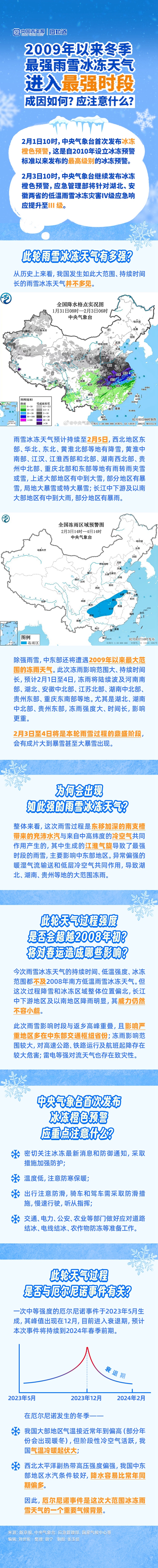 今冬此刻南方多省雨雪紛紛,氣溫驟降。2月3日,中央氣象臺繼續(xù)發(fā)布冰凍橙色預(yù)警,應(yīng)急管理部將11省份的低溫雨雪冰凍災(zāi)害應(yīng)急響應(yīng)提升至IV級及以上。說好的暖冬為何這么冷?強(qiáng)度是否會超越2008年初?有哪些需要注意的方面?