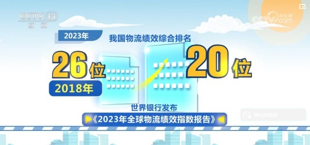 世界銀行發(fā)布的《2023年全球物流績效指數(shù)報告》中,我國物流績效綜合排名由2018年的26位升至20位,保持了穩(wěn)步上升的趨勢,其中,物流基礎設施、國際貨運時效兩方面評分相對較高,達到國際先進水平。基礎設施評分排名超過美國、法國等發(fā)達經(jīng)濟體,硬件環(huán)境建設取得良好成效。