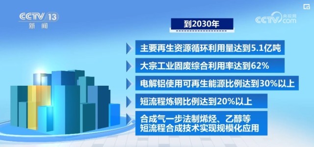 《指導(dǎo)意見(jiàn)》提出,到2030年,主要再生資源循環(huán)利用量達(dá)到5.1億噸,大宗工業(yè)固廢綜合利用率達(dá)到62%,電解鋁使用可再生能源比例達(dá)到30%以上,短流程煉鋼比例達(dá)到20%以上,合成氣一步法制烯烴、乙醇等短流程合成技術(shù)實(shí)現(xiàn)規(guī)?;瘧?yīng)用。
