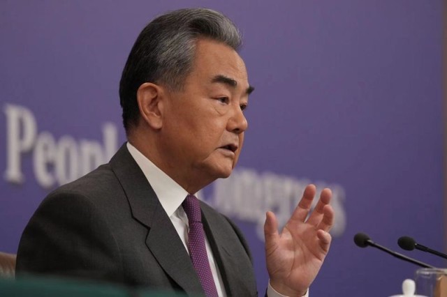 3月7日上午,十四屆全國人大二次會議舉行記者會,中共中央政治局委員、外交部部長王毅回答巴以相關問題。中青報·中青網記者 李雋輝/攝