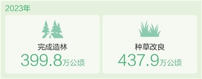 2023年,新建和改造提升城市綠地3.4萬公頃,開工建設(shè)“口袋公園”4128個,建設(shè)綠道5325公里;林草產(chǎn)業(yè)總產(chǎn)值9.28萬億元;實(shí)現(xiàn)以經(jīng)濟(jì)林為主的森林食物產(chǎn)量2.26億噸;生態(tài)旅游游客量25.31億人次。