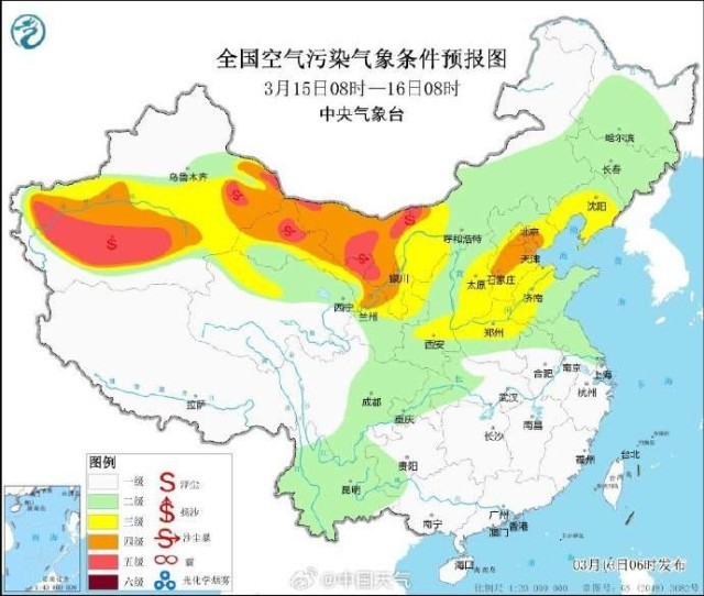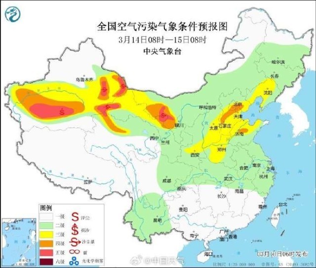 據(jù)中央氣象臺預報,14日至17日,受冷空氣大風影響,西北地區(qū)大部、華北等地自西向東有一次沙塵天氣過程。這將是今春首場沙塵天氣,也是今年來第二輪沙塵過程,上一次還是春節(jié)假期結束后的寒潮所帶來的強沙塵暴過程(2月17日-2月20日)。