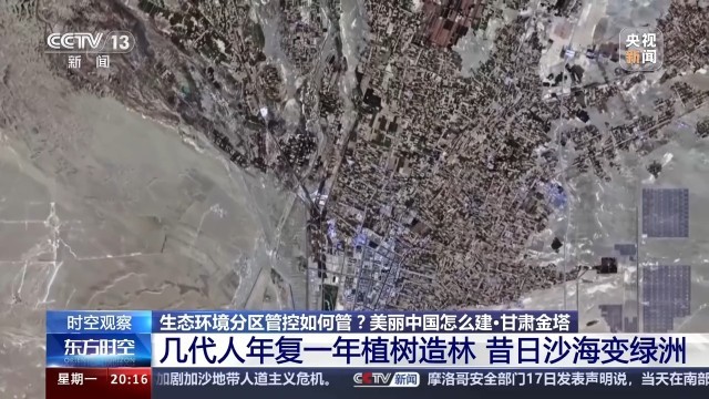 甘肅酒泉金塔縣潮湖林場副場長 王端政:過去的沙進(jìn)人退變成了現(xiàn)在的人進(jìn)沙退,過去的荒漠戈壁變成了現(xiàn)在的綠洲,現(xiàn)在金塔的生態(tài)環(huán)境得到了很大的改善。