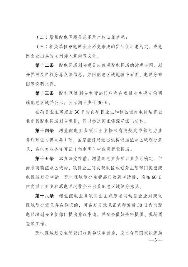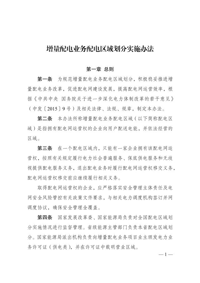 央視網(wǎng)消息:據(jù)國家發(fā)展改革委、國家能源局,為規(guī)范增量配電業(yè)務(wù)配電區(qū)域劃分,積極穩(wěn)妥推進(jìn)增量配電業(yè)務(wù)改革,國家發(fā)展改革委、國家能源局修訂了《增量配電業(yè)務(wù)配電區(qū)域劃分實施辦法》。