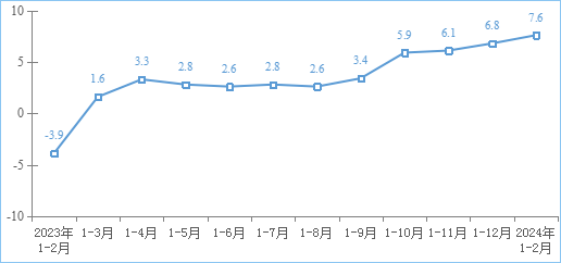 互聯(lián)網(wǎng)業(yè)務(wù)收入穩(wěn)步提升。1—2月份,我國規(guī)模以上互聯(lián)網(wǎng)和相關(guān)服務(wù)企業(yè)(以下簡稱互聯(lián)網(wǎng)企業(yè))完成互聯(lián)網(wǎng)業(yè)務(wù)收入2463億元,同比增長7.6%,增速較2023年全年提升0.8個(gè)百分點(diǎn)。