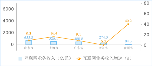 2024年1—2月份收入居前5名省市互聯(lián)網(wǎng)業(yè)務(wù)收入增長情況