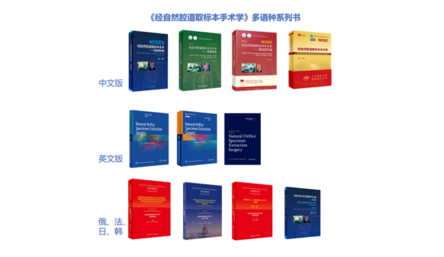 2023年,由人民衛(wèi)生出版社出版的以中文為主體,英、韓、日、俄、法相配套的五大語種NOSES手術(shù)系列專著《經(jīng)自然腔道取標(biāo)本手術(shù)學(xué)》亮相第75屆法蘭克福國際書展,獲多個(gè)參展國高度評價(jià)。
