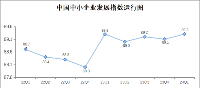 中國中小企業(yè)協(xié)會今天(9日)發(fā)布,一季度中國中小企業(yè)發(fā)展指數為89.3,比去年四季度上升0.2點。