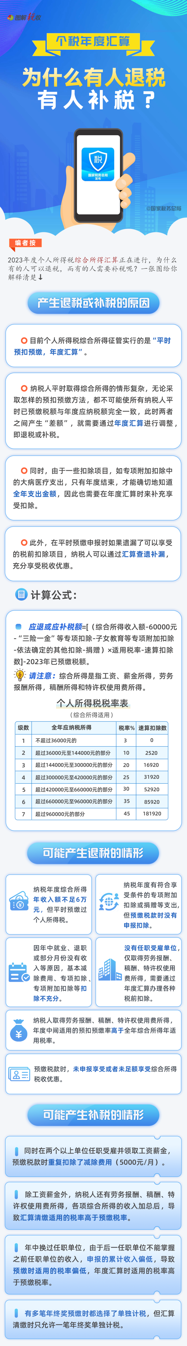 2023年度個人所得稅綜合所得匯算正在進(jìn)行,為什么有的人可以退稅,而有的人需要補稅呢?一張圖給你解釋清楚 ↓