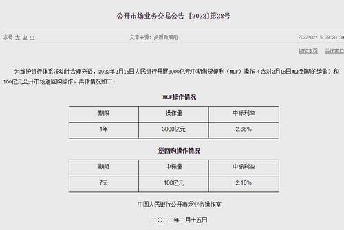 中新財經(jīng)2月15日電 據(jù)中國人民銀行官網(wǎng)消息,為維護(hù)銀行體系流動性合理充裕,2022年2月15日人民銀行開展3000億元中期借貸便利(MLF)操作(含對2月18日MLF到期的續(xù)做)和100億元公開市場逆回購操作。(完)