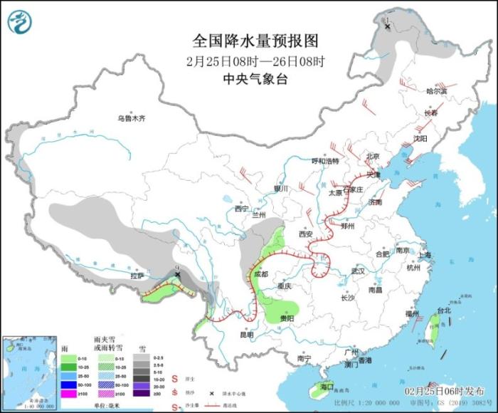 具體來看,中央氣象臺(tái)預(yù)計(jì),今天,內(nèi)蒙古東北部、黑龍江西北部、新疆南疆西部山區(qū)、西藏大部、甘肅南部、川西高原東部、云南西北部等地部分地區(qū)有小到中雪或雨夾雪,其中,西藏東南部局地有大雪(5~9毫米)。西藏東南部、甘肅南部、陜西西南部、四川盆地西部、貴州中西部、云南西北部、海南島大部、臺(tái)灣島東部等地部分地區(qū)有小雨。