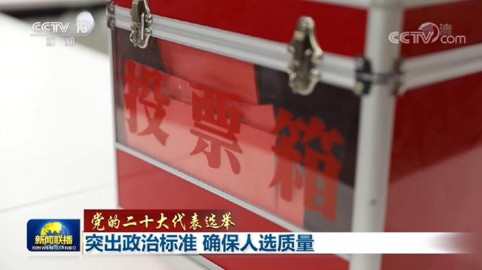 央視網(wǎng)消息(新聞聯(lián)播):各地認真推進黨的二十大代表推薦選舉工作,充分發(fā)揮黨組織領(lǐng)導(dǎo)和把關(guān)作用,確保高標準、高質(zhì)量選出黨的二十大代表。
