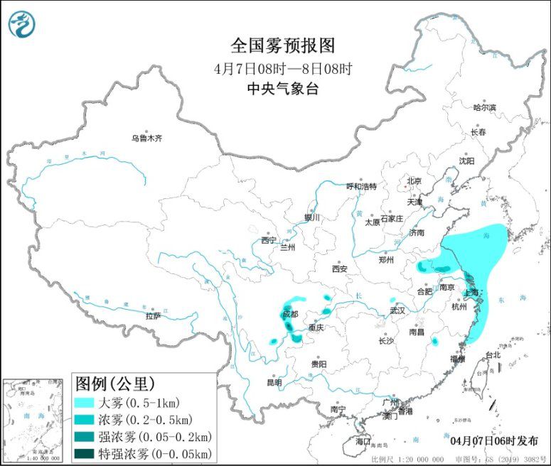 中新網(wǎng)4月7日電 據(jù)中央氣象臺網(wǎng)站消息,預計4月7日早晨至夜間,黃海中部和南部海域、東海西部海域、江蘇東部沿岸海域、長江口附近海域、浙江東部沿岸海域、福建東北部沿岸海域將有能見度不足1公里的大霧天氣。此外,7日早晨至上午,四川盆地西部和南部、重慶中部、安徽北部、江蘇北部和東部、上海、浙江東北部等地的部分地區(qū)有大霧天氣,局地有能見度不足500米的濃霧(見圖1)。為此,中央氣象臺7日6時繼續(xù)發(fā)布大霧黃色預警。7日至9日,西南地區(qū)多陰雨,西藏東南部、四川南部、云南中西部和北部、貴州西部等地有中到大雨。