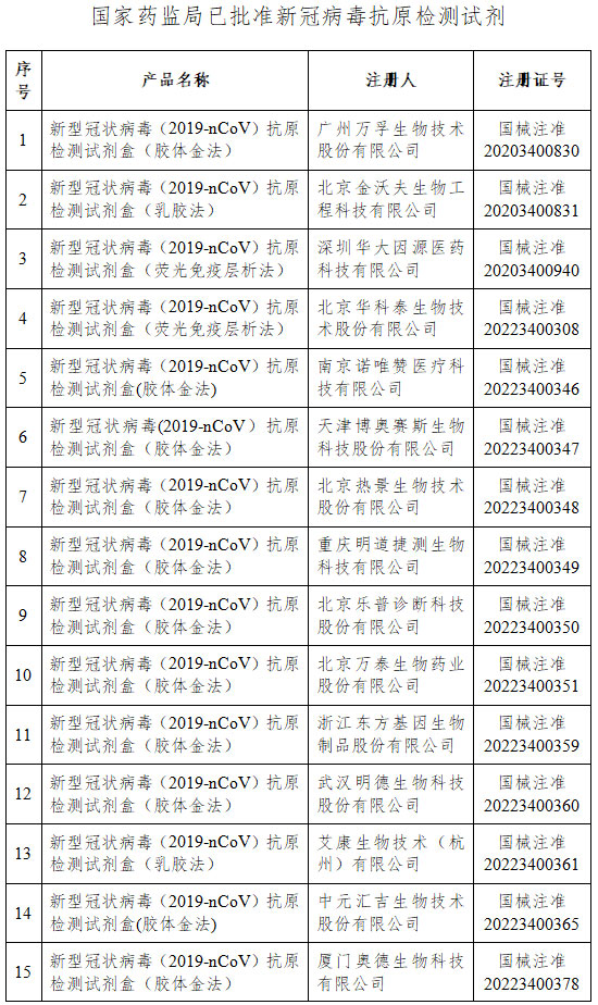 國家藥監(jiān)局已批準(zhǔn)29個新冠病毒抗原檢測試劑