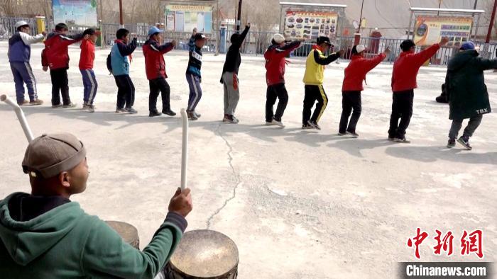 圖為多油完小學(xué)生在課余時(shí)間練習(xí)傳統(tǒng)非遺舞蹈“嘎爾”舞?!∝暽@?攝