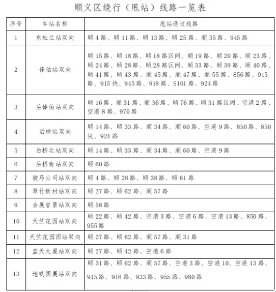 北京順義:對(duì)途經(jīng)封控區(qū)周邊的59條公交線路采取甩站繞行臨時(shí)調(diào)度措施