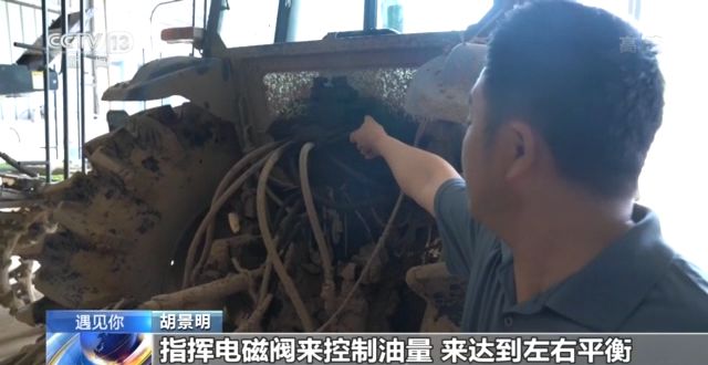 胡景明:如果農(nóng)具有一點(diǎn)傾斜,傳感器會自動發(fā)出信號給控制器,控制器再發(fā)出信號,指揮電磁閥控制油量,來達(dá)到左右平衡。