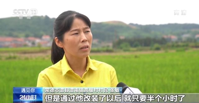 常德市澧縣澧南鎮(zhèn)高堰村村民 張敏:以前耕一畝田大概要一個小時(shí),但是通過他改裝以后,就只要半個小時(shí)了,減少人工成本,提高效率。