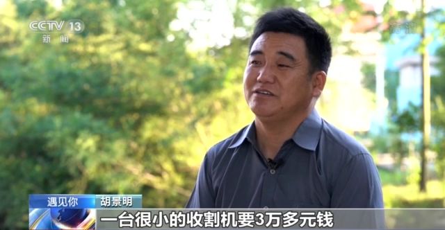 胡景明:一臺很小的收割機(jī)要3萬多元錢,我一聽半天沒出聲。