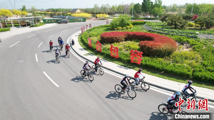 邢臺市任澤區(qū)的騎行愛好者在當(dāng)?shù)氐男现莺珗@綠道上進(jìn)行自由騎行活動?!∷谓?攝