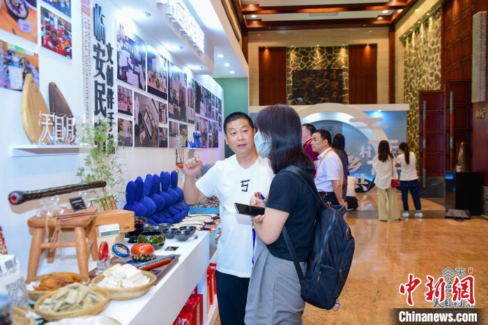 會場外擺放的臨安特色產(chǎn)品。 杜煥祺 攝
