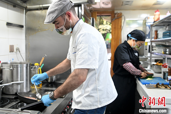 圖為6月29日,云南昆明,法國廚師文森特在廚房內(nèi)忙碌。 中新社記者 李嘉嫻 攝