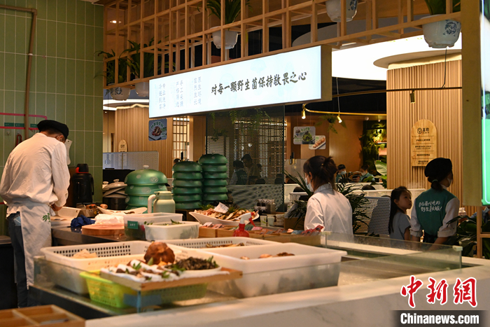 圖為7月11日,云南昆明,一家野生菌火鍋店內(nèi)的工作人員在開放式廚房內(nèi)處理野生菌。 中新社記者 李嘉嫻 攝