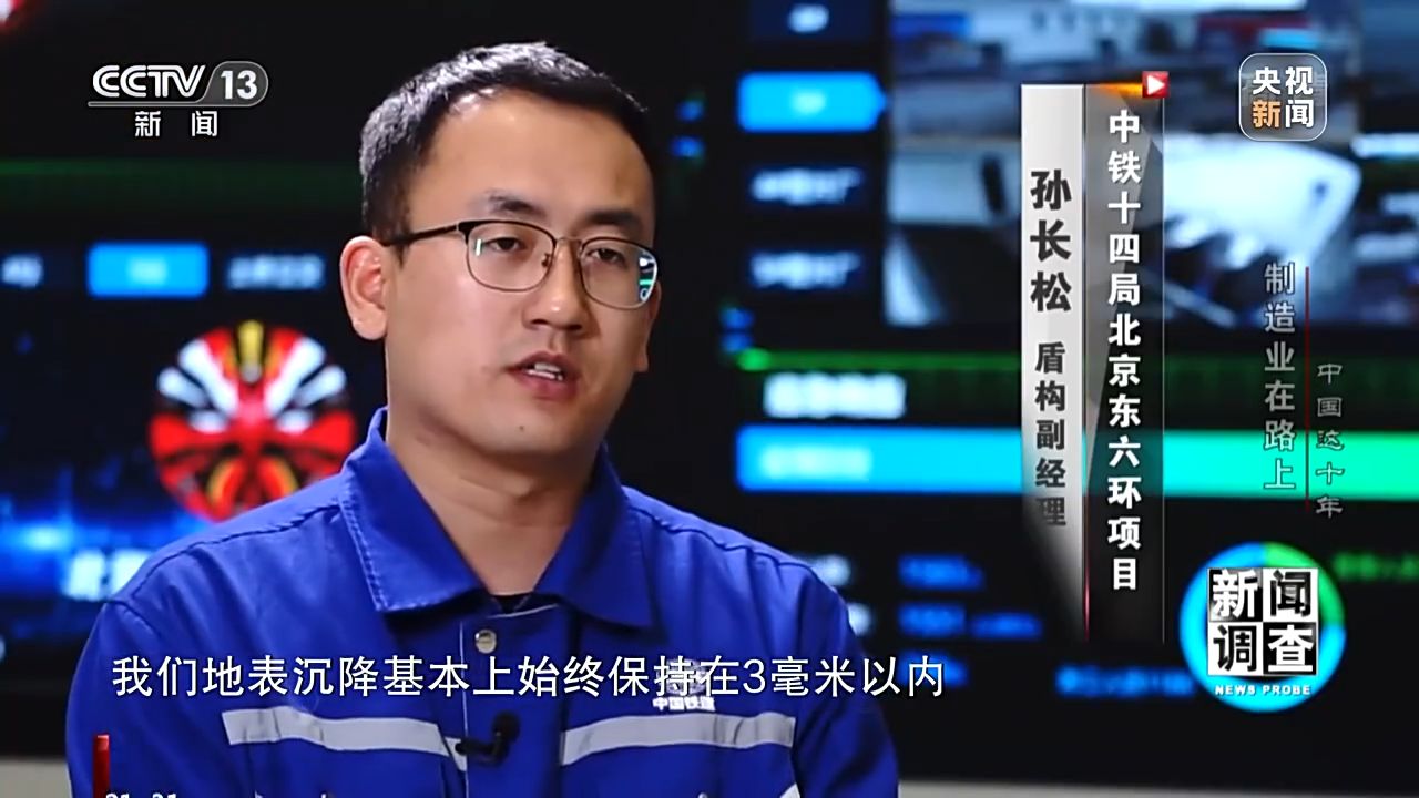 孫長松 中鐵十四局北京東六環(huán)項(xiàng)目盾構(gòu)副經(jīng)理:我們盾構(gòu)機(jī)開挖直徑是16米07,我們地表沉降基本上始終保持在3毫米以內(nèi)。