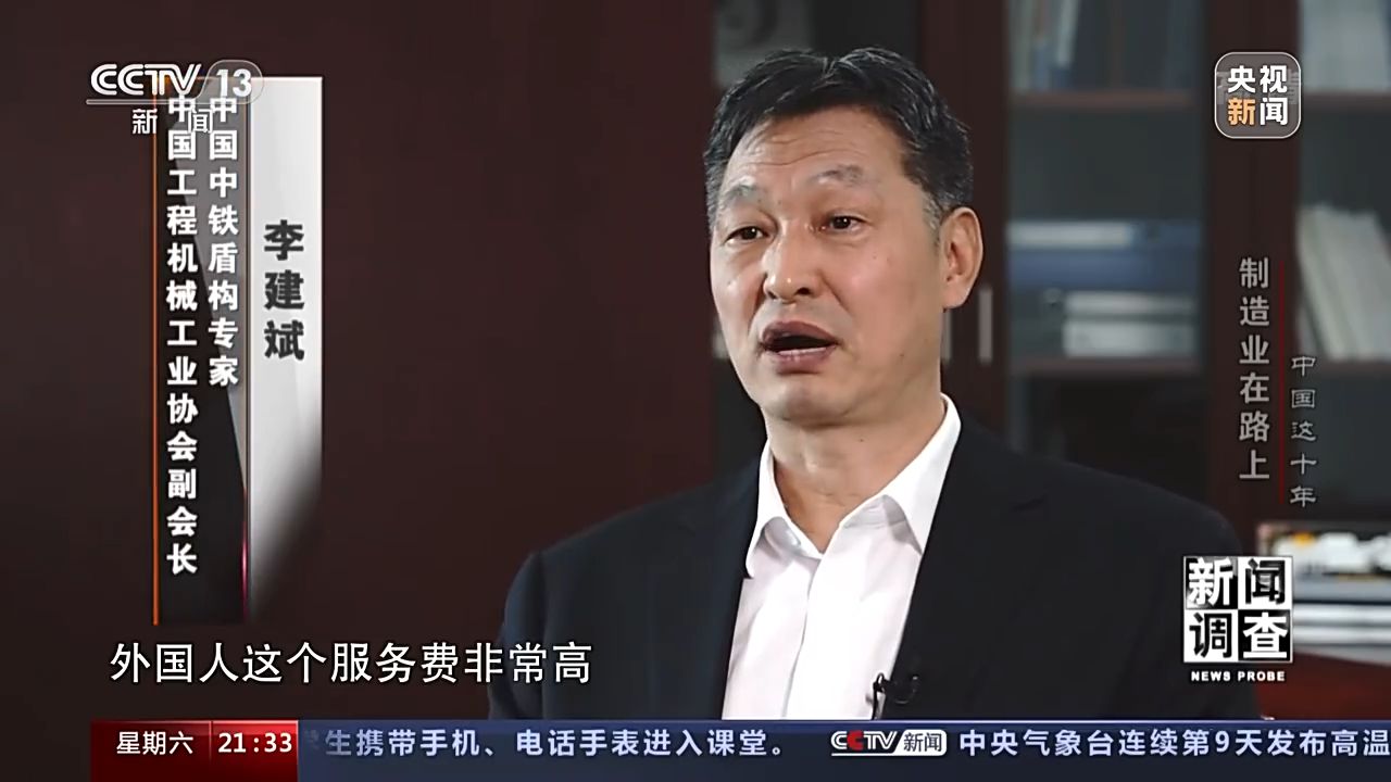 中國工程機(jī)械工業(yè)協(xié)會(huì)副會(huì)長 中國中鐵盾構(gòu)專家 李建斌:兩臺(tái)將近七個(gè)億,外國人這個(gè)服務(wù)費(fèi)非常高,服務(wù)的時(shí)間非常短,每天就是八小時(shí),過了人家不上班,我們是三班制,他是一班制,機(jī)器壞了我們就要等,這個(gè)是對(duì)我們刺激非常大,你不掌握技術(shù),所以說你處處受制于人。