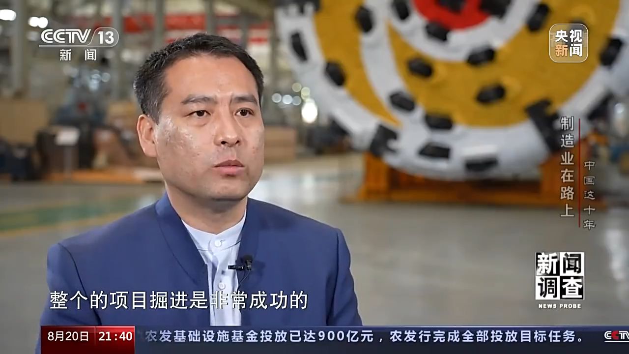 中鐵工程裝備集團(tuán)有限公司總經(jīng)理 張志國:(工程)當(dāng)中設(shè)備它通過了,一個(gè)大的球一樣的巖石,這個(gè)是當(dāng)時(shí)在地質(zhì)勘察階段是沒有發(fā)現(xiàn)的,但是就是因?yàn)槎軜?gòu)機(jī)設(shè)計(jì)的它的性能是比較好的,整個(gè)的項(xiàng)目掘進(jìn)是非常成功的。