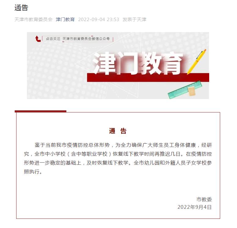 天津推遲中小學(xué)?;謴?fù)線下教學(xué)時(shí)間