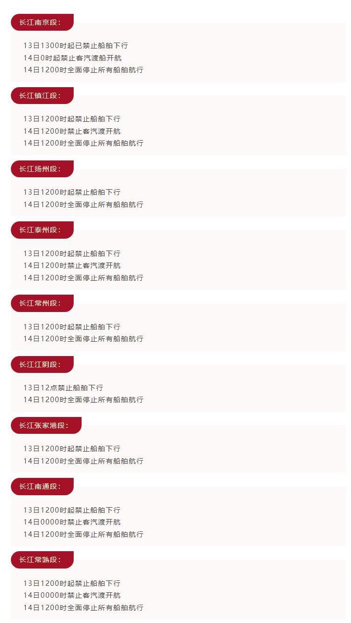 江蘇省水上搜救中心14日10時(shí)提升為防臺(tái)Ⅱ級(jí)應(yīng)急響應(yīng),比三級(jí)響應(yīng)更嚴(yán)格的是,除應(yīng)急處置和疏散上行的船舶外,其他船舶一律停止航行,到安全水域拋錨。