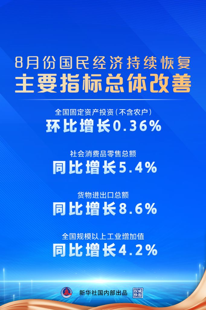 國家統(tǒng)計(jì)局:8月份國民經(jīng)濟(jì)持續(xù)恢復(fù),主要指標(biāo)總體改善