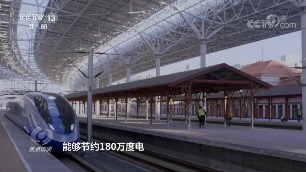 朱彥說:“最后列車的阻力,和和諧號相比能耗降低了11%,到京張智能動車組的時候,我們又進一步降低到了15%,列車的綜合能耗也降低了10%以上,也就相當于列車運行一年能夠節(jié)約180萬度電。”