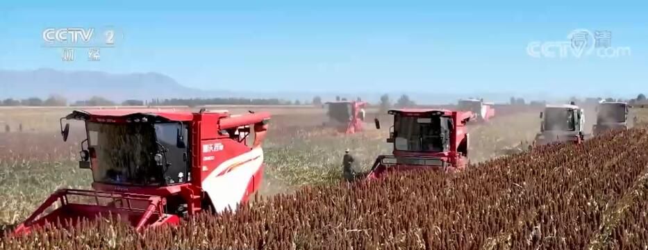 央視網消息:金秋時節(jié),甘肅省張掖市民樂縣的1.2萬畝高粱已經成熟了,紅色的高粱和穿梭的聯(lián)合收割機構成一幅色彩艷麗的豐收畫卷。