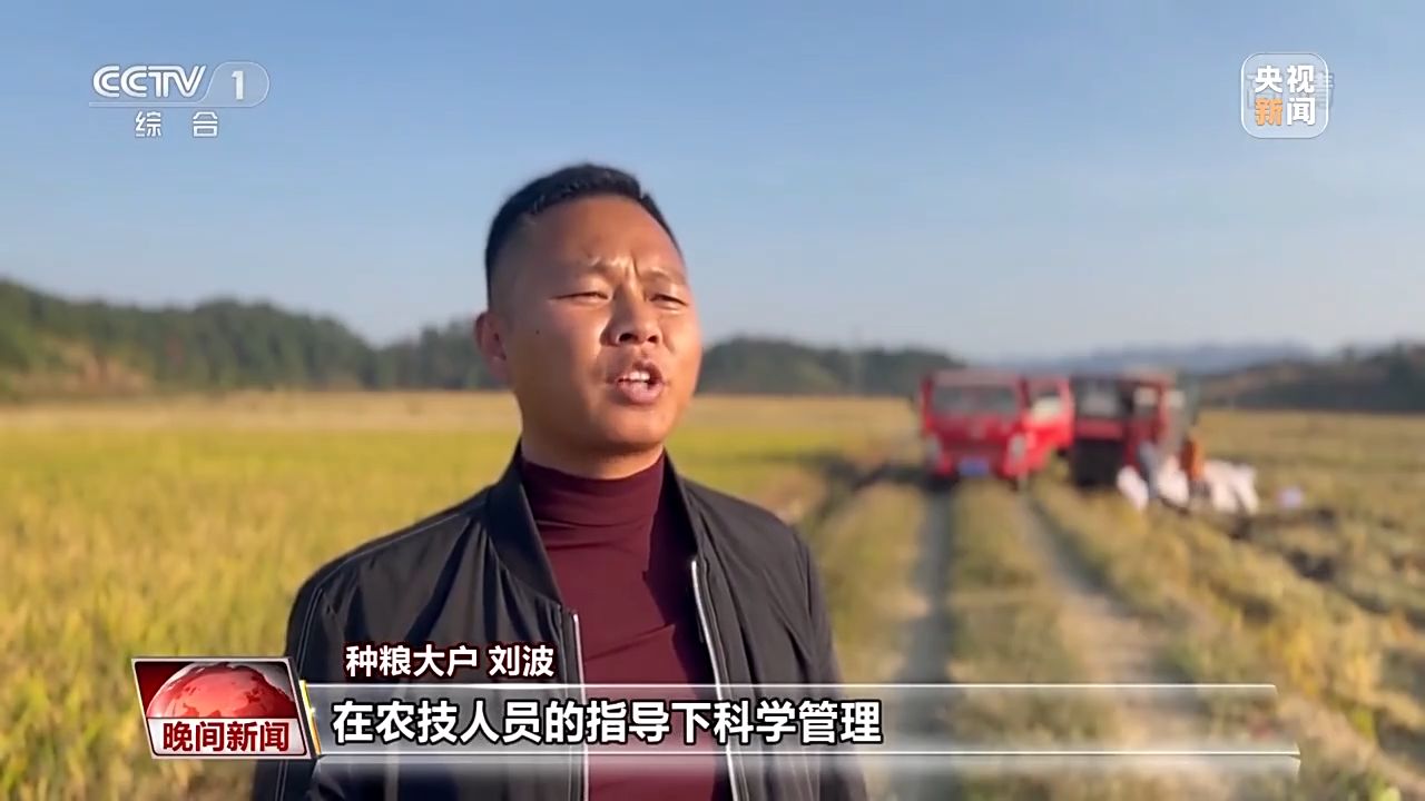 江西撫州黎川縣潭溪鄉(xiāng)蘆陂村種糧戶 湯希堯:按照這個速度今天一天就能全部割完。今年晚稻的長勢還算不錯,畝產(chǎn)都在千斤以上。