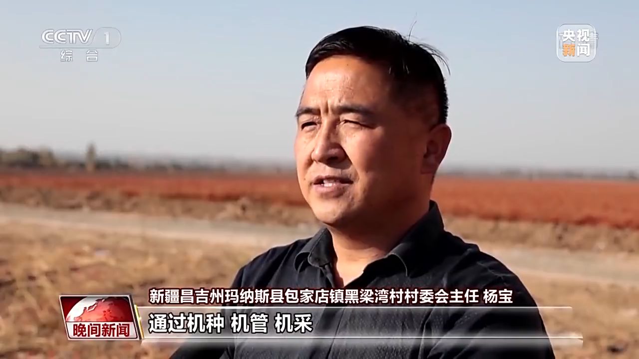 新疆昌吉州瑪納斯縣包家店鎮(zhèn)黑梁灣村村委會主任 楊寶:通過機(jī)種、機(jī)管、機(jī)采,目前產(chǎn)量在五百公斤左右,農(nóng)戶除掉開支,每畝地純收入在兩千元左右。(央視新聞客戶端)