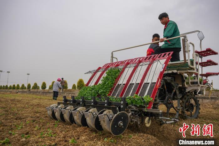 圖為南昌市安義縣農(nóng)戶正在進行油菜毯狀苗機械化育苗移栽。 記者 華山 攝