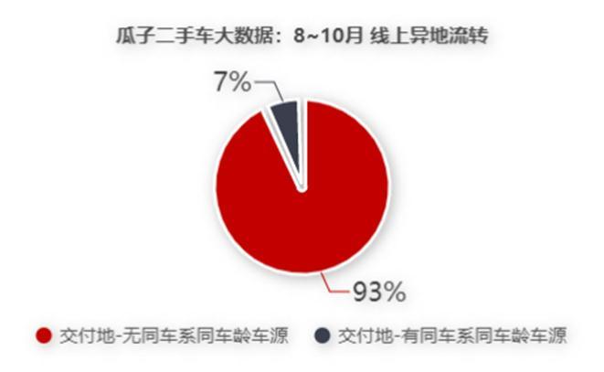 瓜子二手車大數(shù)據(jù)顯示,異地交易占比從8月前3個(gè)月的平均35%,攀升至8月起三個(gè)月的均值85%以上,提升超1.4倍。