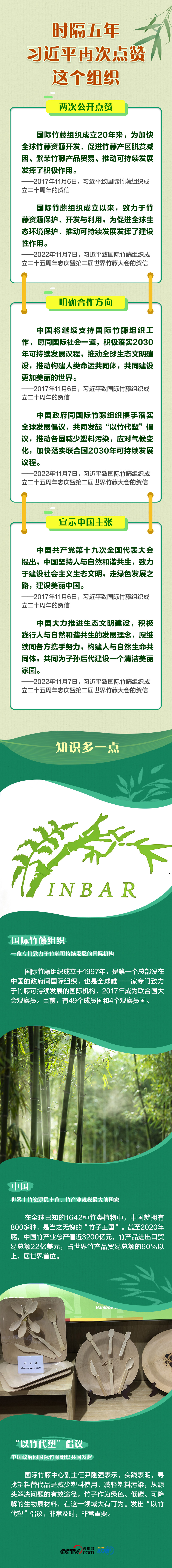 聯(lián)播+“國(guó)際竹藤組織成立以來(lái),致力于竹藤資源保護(hù)、開(kāi)發(fā)與利用,為促進(jìn)全球生態(tài)環(huán)境保護(hù)、推動(dòng)可持續(xù)發(fā)展發(fā)揮了建設(shè)性作用?!?1月7日,國(guó)家主席習(xí)近平向國(guó)際竹藤組織成立二十五周年志慶暨第二屆世界竹藤大會(huì)致賀信。