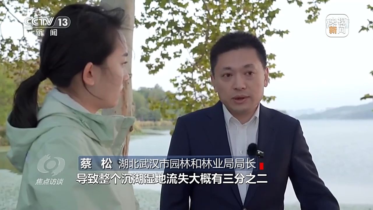 湖北武漢市園林和林業(yè)局局長(zhǎng) 蔡松:圍湖造田、養(yǎng)魚,導(dǎo)致整個(gè)沉湖濕地流失大概有三分之二,比較嚴(yán)重。從2013年開始,武漢市加大對(duì)沉湖濕地的整治力度,通過(guò)生態(tài)補(bǔ)償?shù)姆绞?,整個(gè)退漁還濕達(dá)到了7.8萬(wàn)畝。