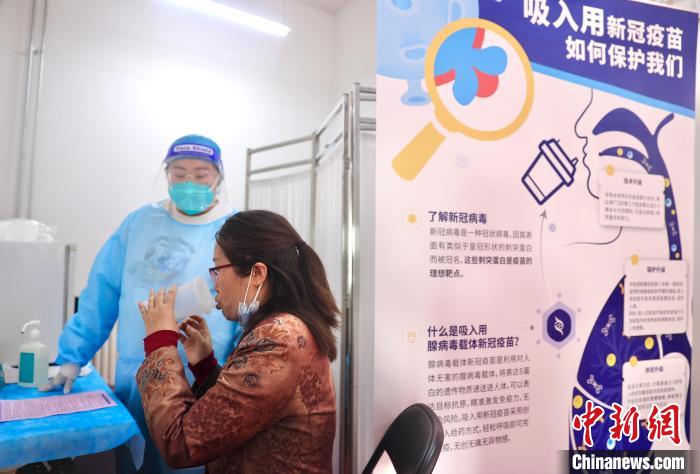 圖為北京市豐臺(tái)區(qū)成壽寺街道吸入用新冠疫苗接種現(xiàn)場(chǎng)。 中新社易海菲 攝