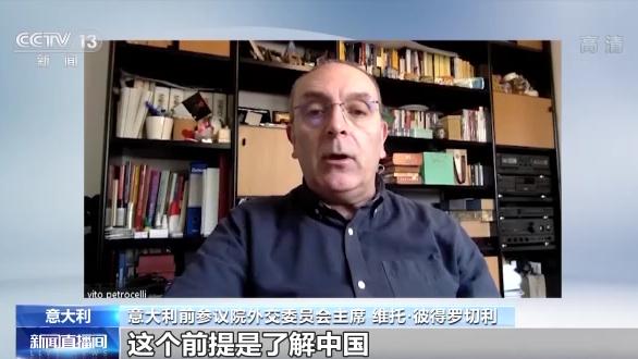 意大利前參議院外交委員會(huì)主席 維托·彼得羅切利:西方只有完全理解了這個(gè)特征才能真正理解中國(guó)和平發(fā)展給全世界帶來的機(jī)遇。這個(gè)前提是了解中國(guó),而不是與中國(guó)對(duì)抗。(央視新聞客戶端)