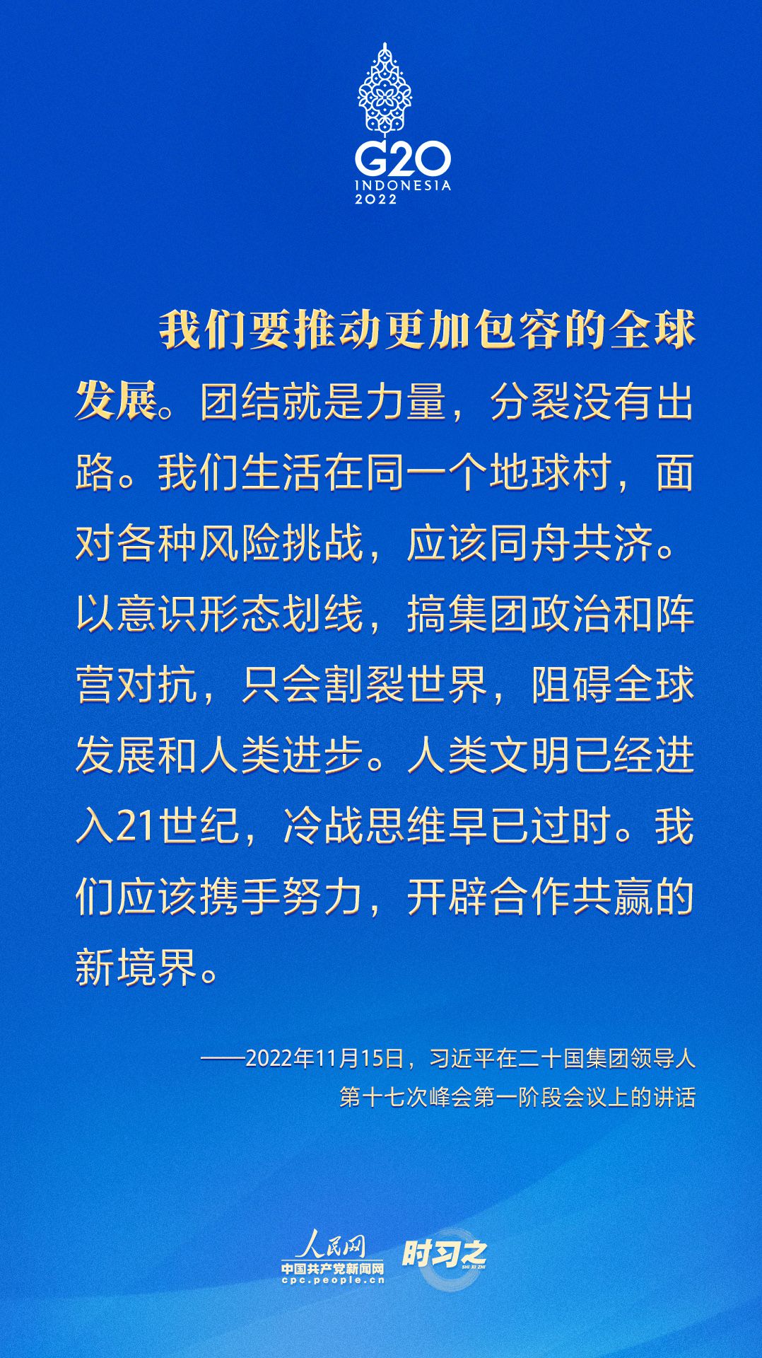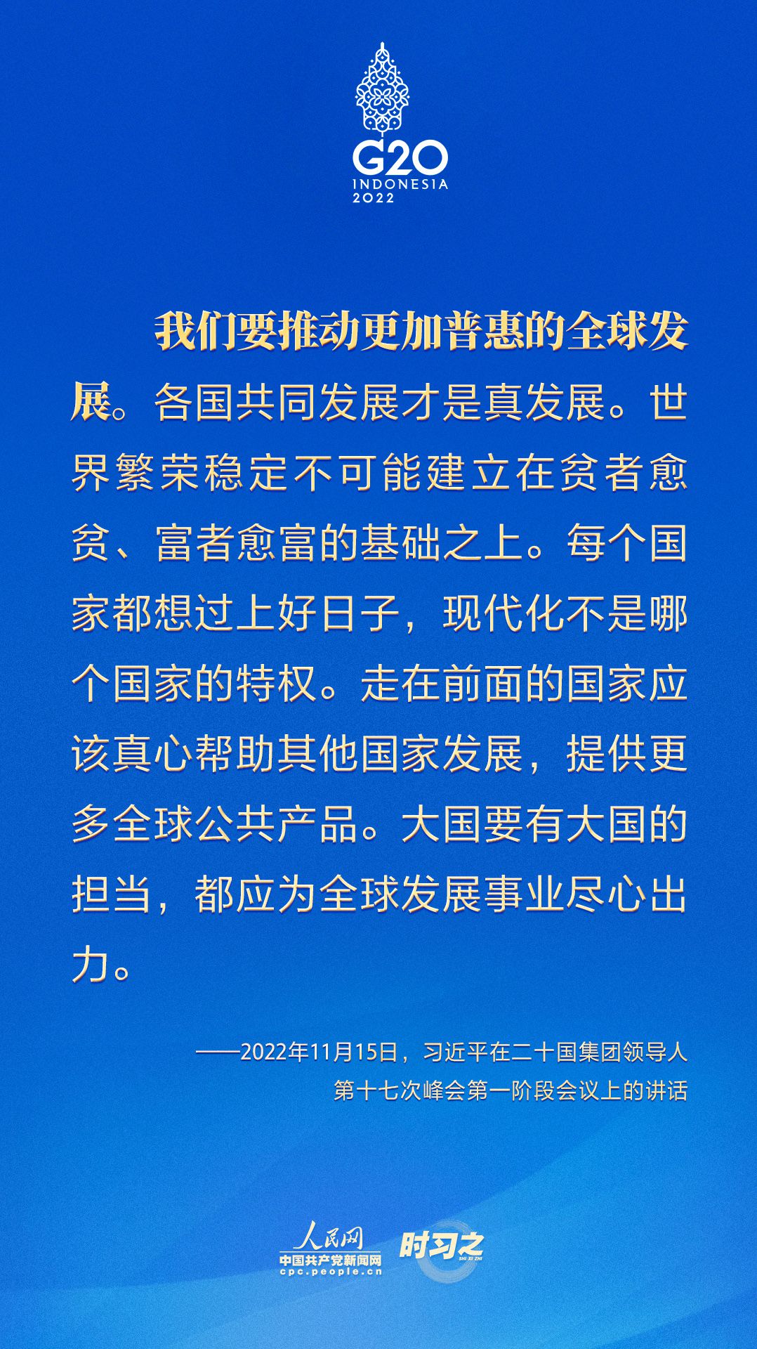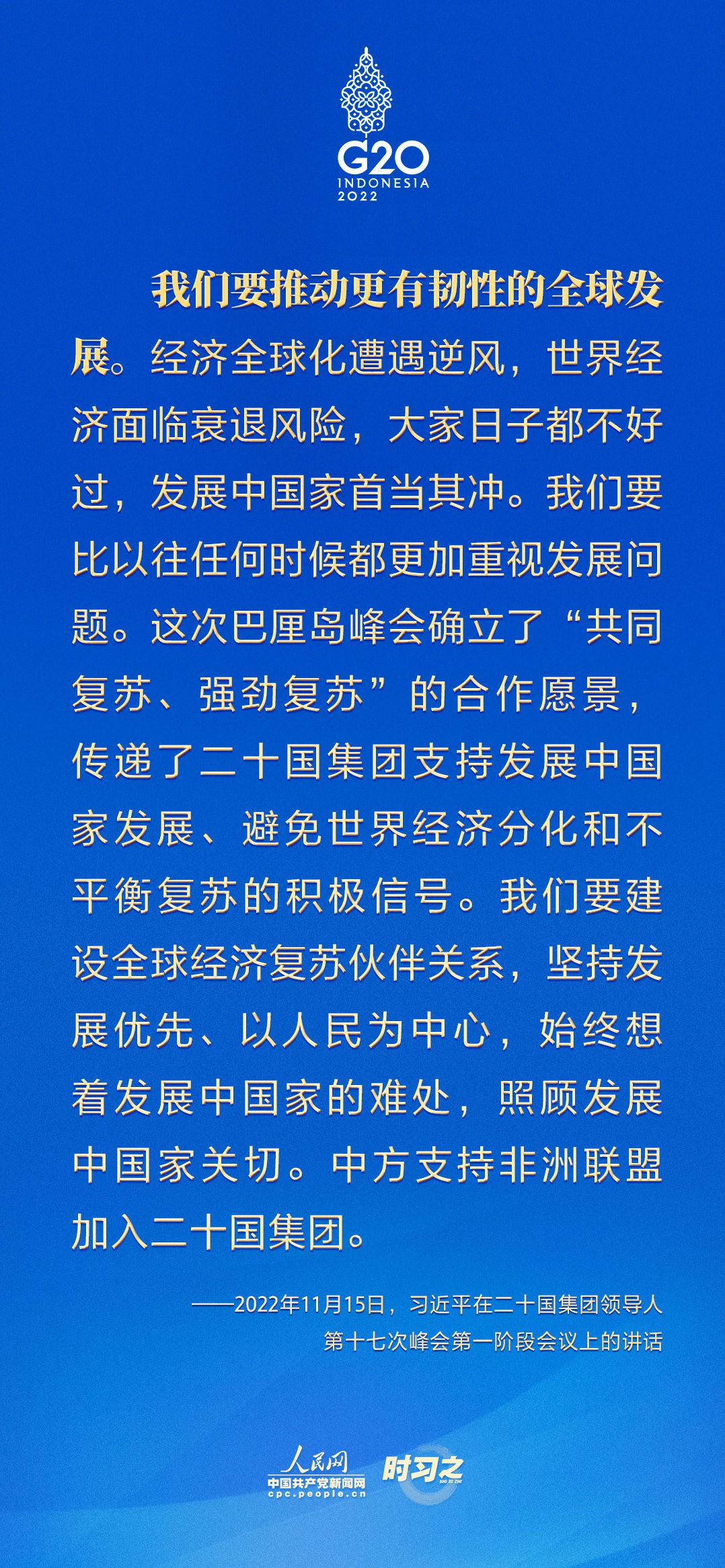 當(dāng)?shù)貢r(shí)間11月15日,二十國(guó)集團(tuán)領(lǐng)導(dǎo)人第十七次峰會(huì)在印度尼西亞巴厘島舉行。國(guó)家主席習(xí)近平出席并發(fā)表題為《共迎時(shí)代挑戰(zhàn) 共建美好未來(lái)》的重要講話(huà)。